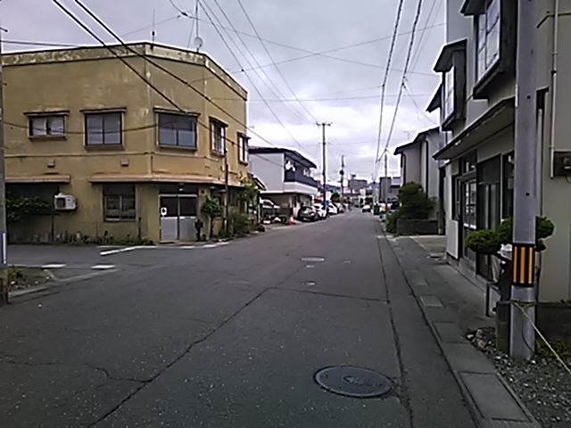 (R07/06/01 10:46:02 石鳥谷(陸中)) このあたりが石鳥谷宿中心部です。 石鳥谷では先週、クマが出たとのことで、ラジオを鳴らしながらびくびくして歩きましたが、見てのとおり、クマなんて居そうにない市街地です。 日が出てきました。 (